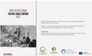 | 05 Ιανουαρίου 2026 | Βιώσιμη Μαγειρική: Συνταγές από το 2o Δείπνο Μηδενικών Αποβλήτων (το βιβλιαράκι δημιουργήθηκε στο πλαίσιο της συνεργασίας του Έργου LIFE IP CYzero Waste με τη Συμμαχία Ζero Waste Alliance Cyprus – Δράση C4.3 του Έργου LIFE IP CYzero Waste, Ανοικτή Πρόσκληση) |  |